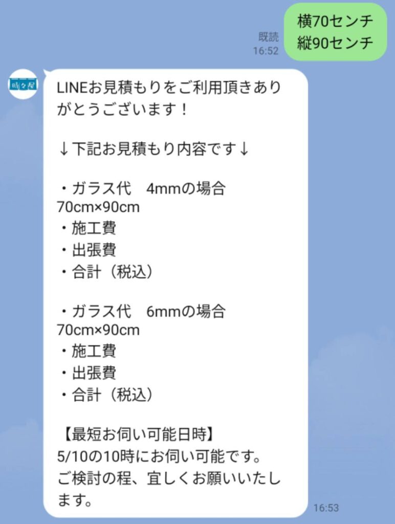 「現場をしっかり見てもらわないと不安…」、「割れたガラスをすぐに直してほしい」、「概算ではなく、正確な金額を知りたい」――そのようなお客様には、電話1本でスピーディーにお伺いいたします。
