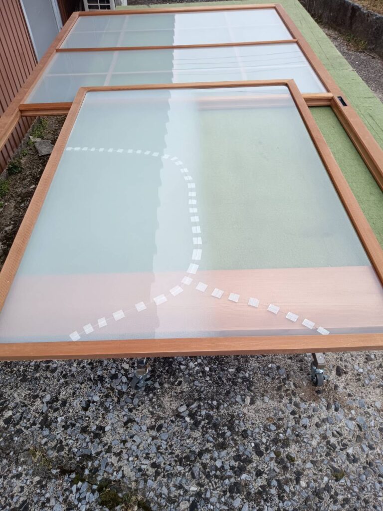 〇障子ガラスは需要減少により、現在は梨地ガラスやデザインガラスが廃盤のため、廃盤ガラスの場合は、すりガラス・透明ガラス・梨地アクリル板での交換となります。
