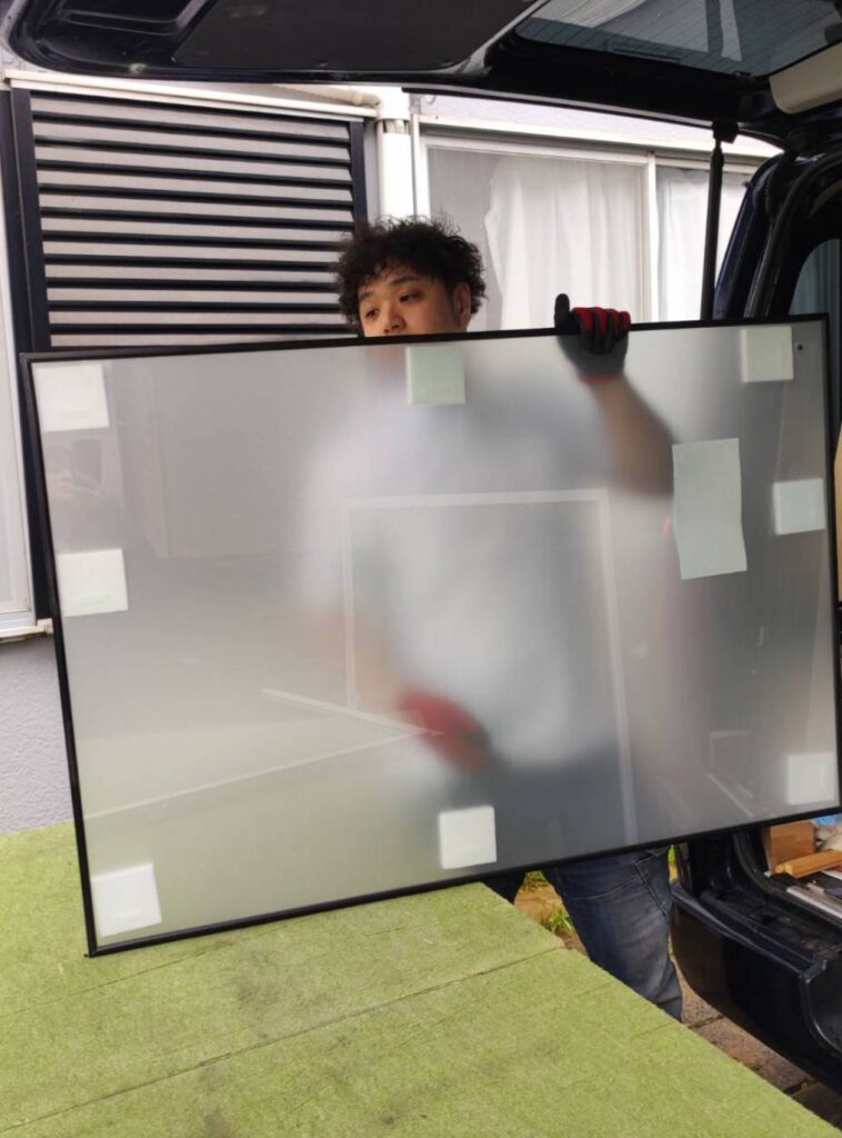 お電話後、現場状況が合えば、その場でガラス交換まで対応可能です。よく使われる透明ガラス・型板ガラス・網入りガラスは車に積載しているため、現場状況が合えばその場で修理が可能です。再訪問なしで、その日のうちに完了することもあります。