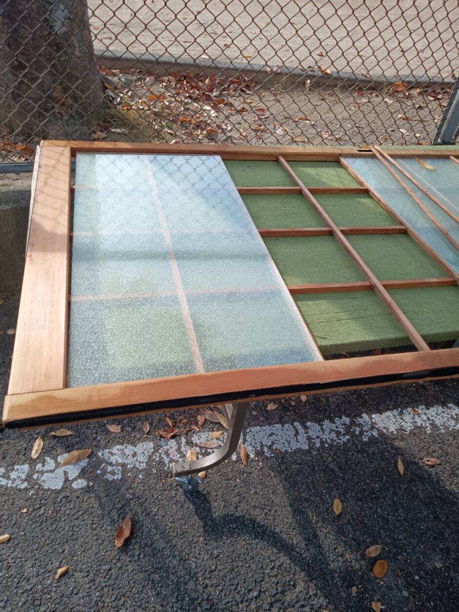 本棚のすりガラスを交換修理しました!同じすりガラスに見えますが、実はこちらの2枚のガラスはそれぞれ違う方法で作成されていて、性質も違いがあります。