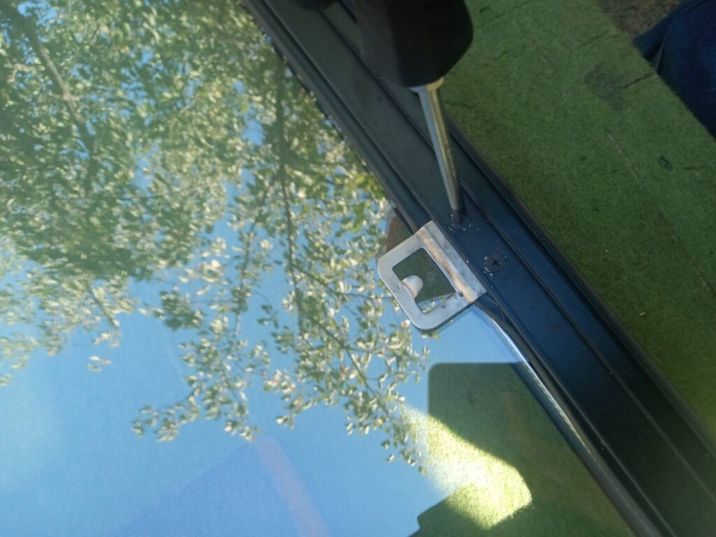 ペアガラス交換では、クレセント受けなどの金物がグレチャンに干渉することがあります。そのため必要に応じて一度金具を外し、納まりを見ながら調整します。