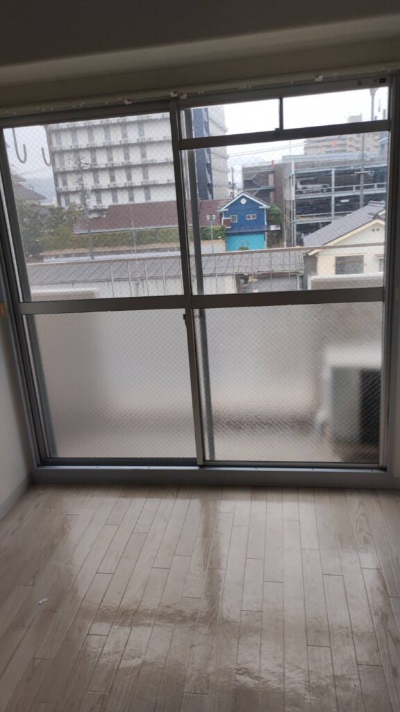 下関市のマンション網入りガラス交換|熱割れによるガラス修理事例