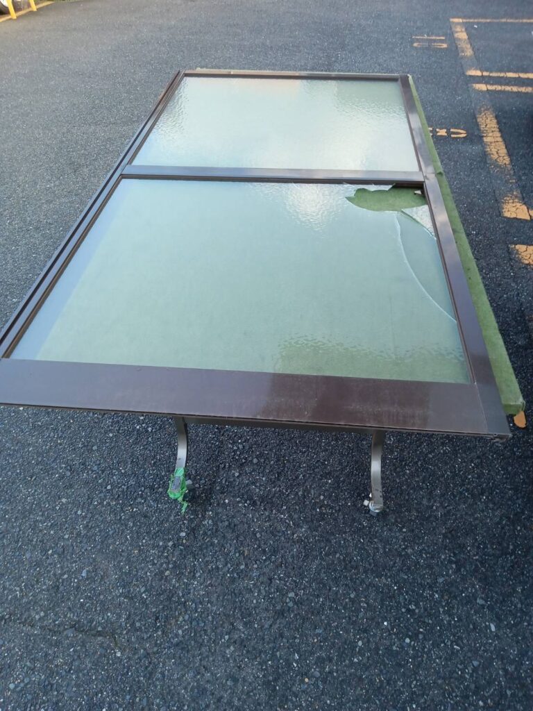 割れたガラスは安全なサイズに処理したうえで回収し、処分まで対応しています。