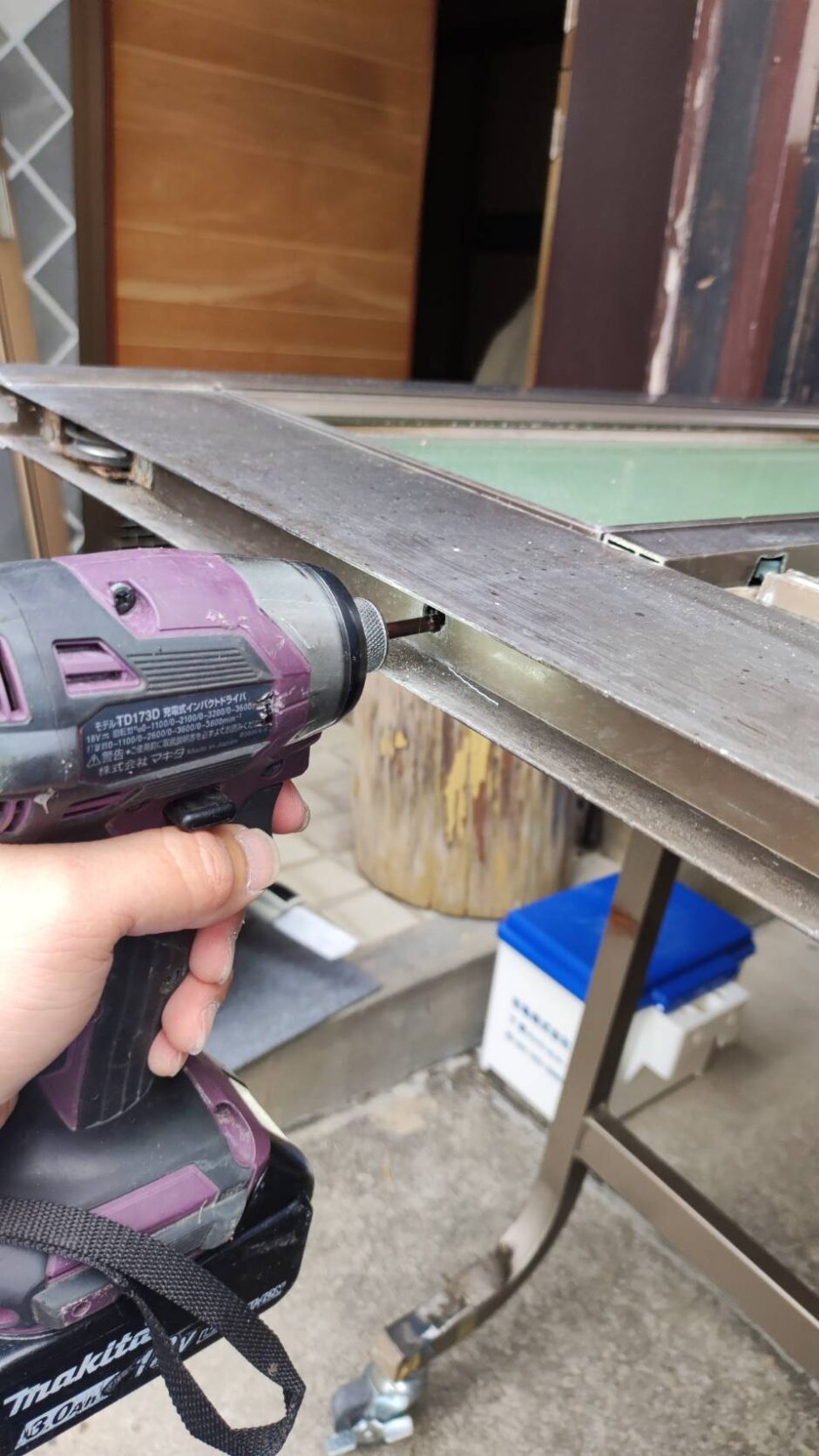 玄関引き戸のガラスは、メーカー・年代・シリーズによって模様入りガラスの種類や施工方法が大きく異なります。特に古い玄関戸は、部品や押さえ材が劣化している場合もあるため、各パーツの状態を確認しながら慎重に取り外して作業を進めました。
