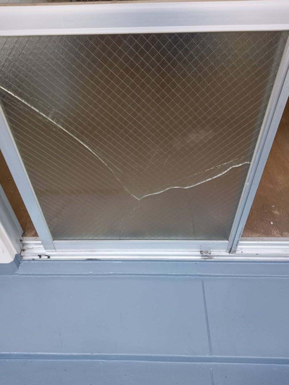 下関市綾羅木|マンションの網入りワイヤーガラス交換(熱割れによる修理事例)|時々屋ガラス店