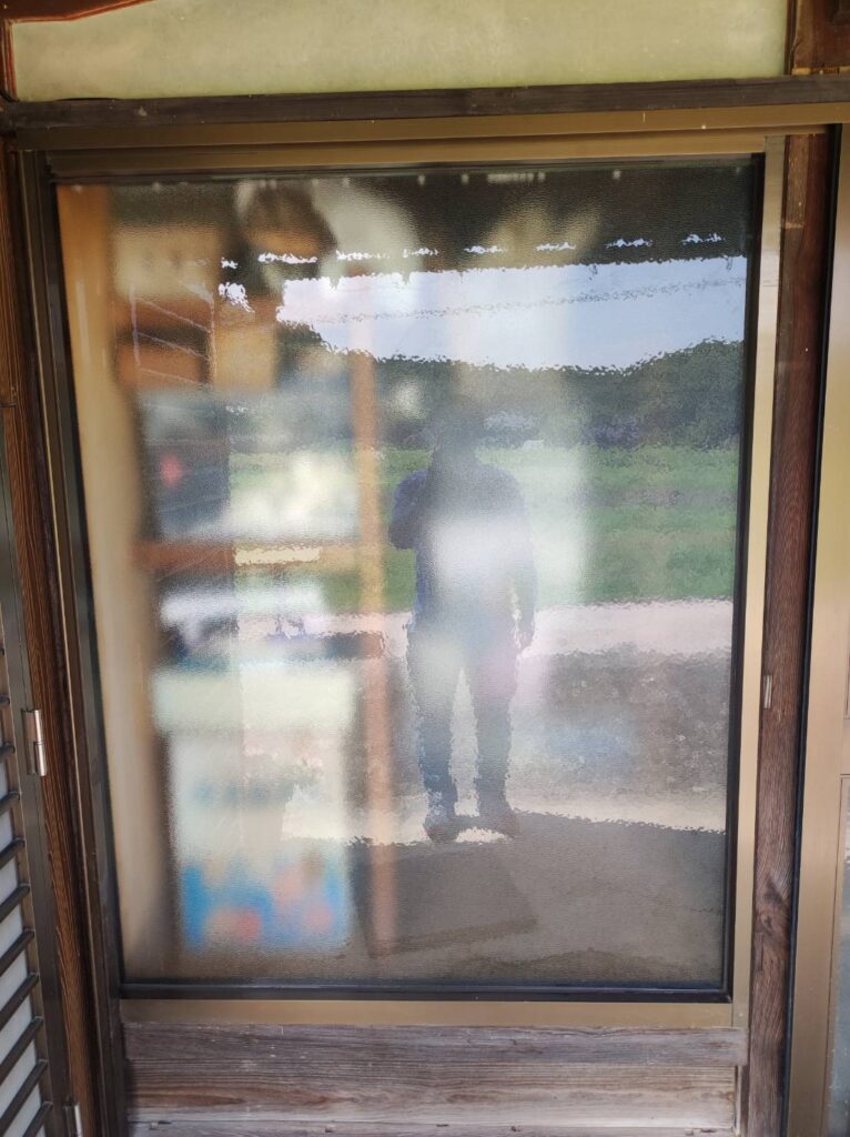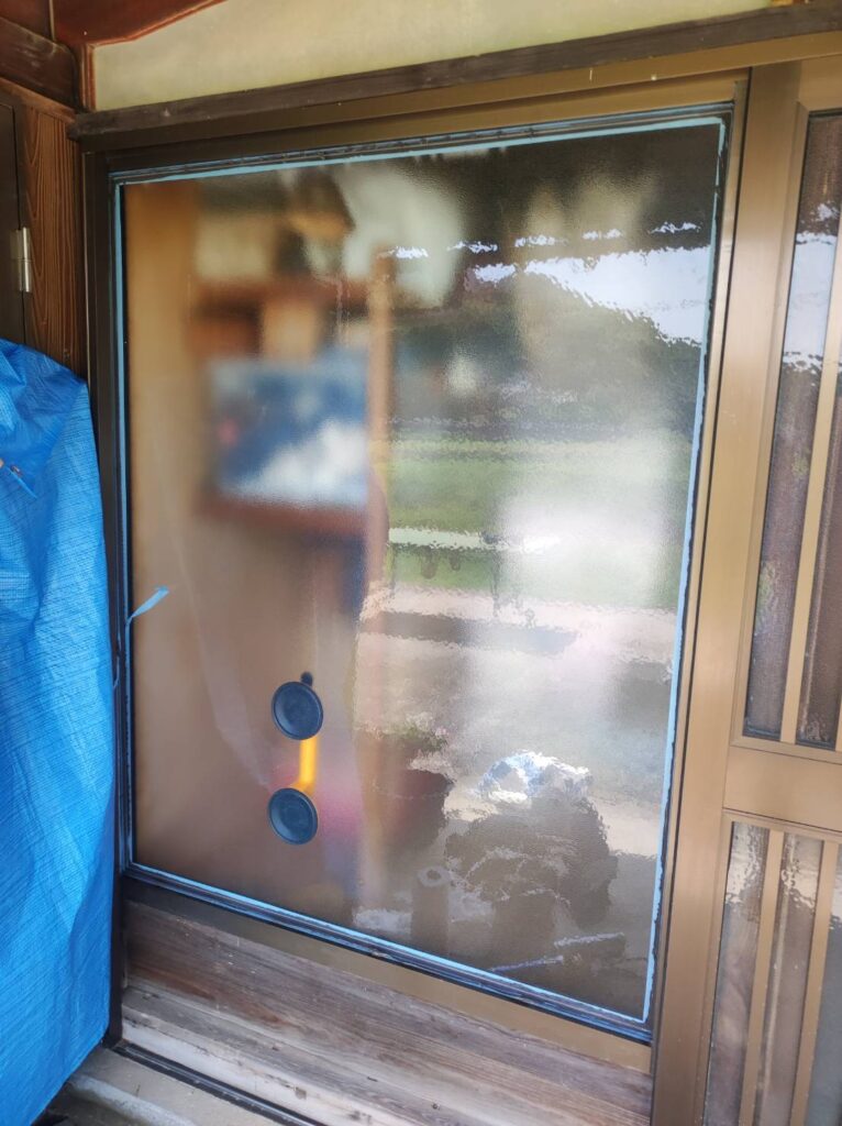 今回は割れてしまった大きなガラスを、目隠し性のあるかすみガラスへ交換しています。