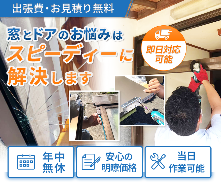 「現場をしっかり見てもらわないと不安…」、「割れたガラスをすぐに直してほしい」――そのようなお客様には、電話1本でスピーディーにお伺いいたします。