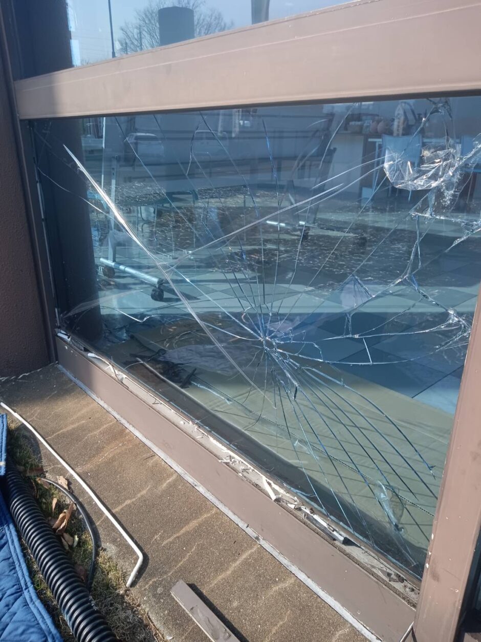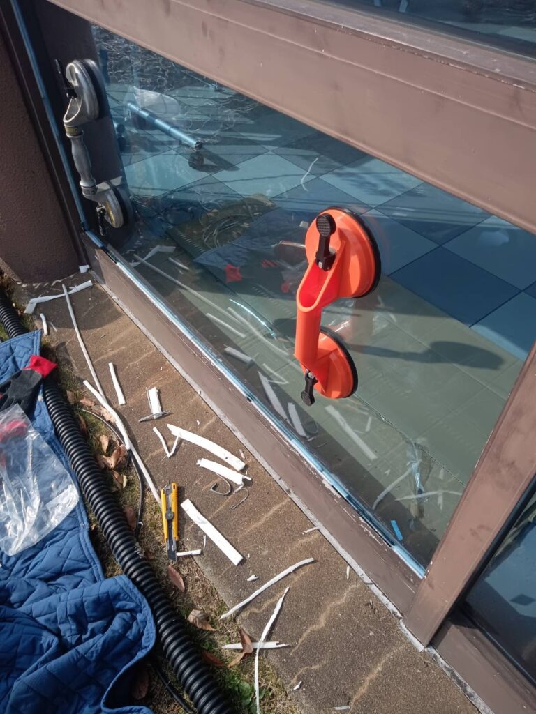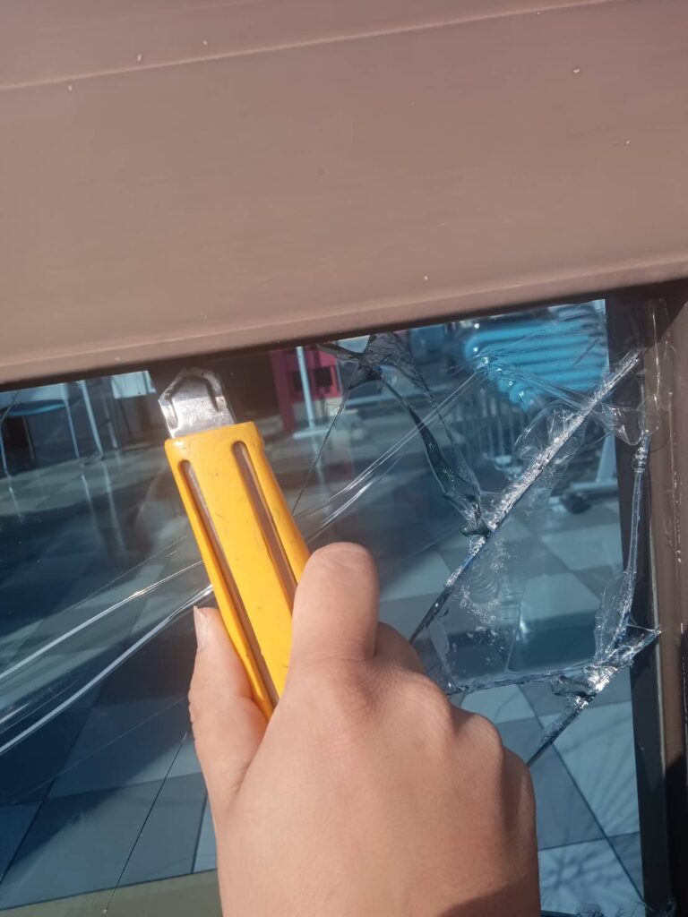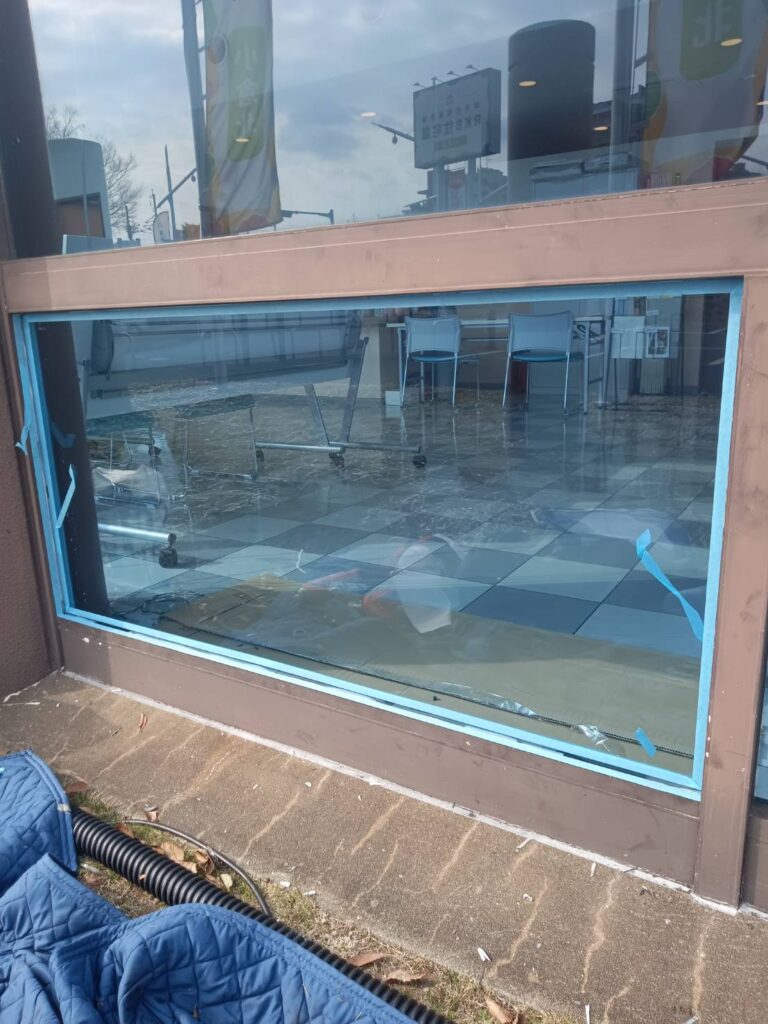 今回は、飛散防止カラーフィルム付きガラスの交換修理を行いました。